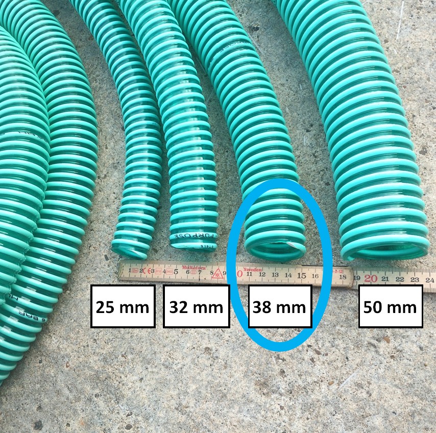 Sugeslange til pumpen eller når der skal suges vand fra boring eller regnvandsbeholderen.