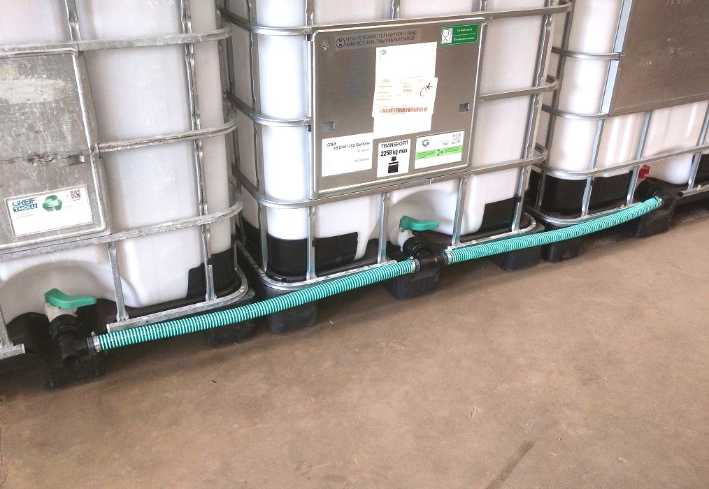 Samling af 3 palletanke med 32mm spiralsugeslange