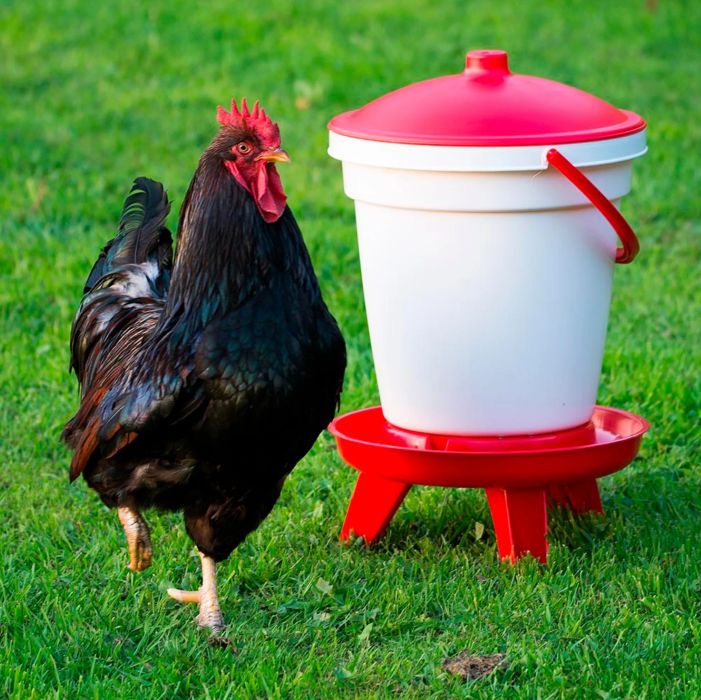 Vandautomat fremstillet i kraftig og god plastik. Design som i gamle dage. Meget nem at påfylde da låget er løs. Med hank for nem transport til hønsegården. Leveres uden ben. Meget stabil og god konstruktion. Beregnet til ca. 60 høns. Indhold 18 liter