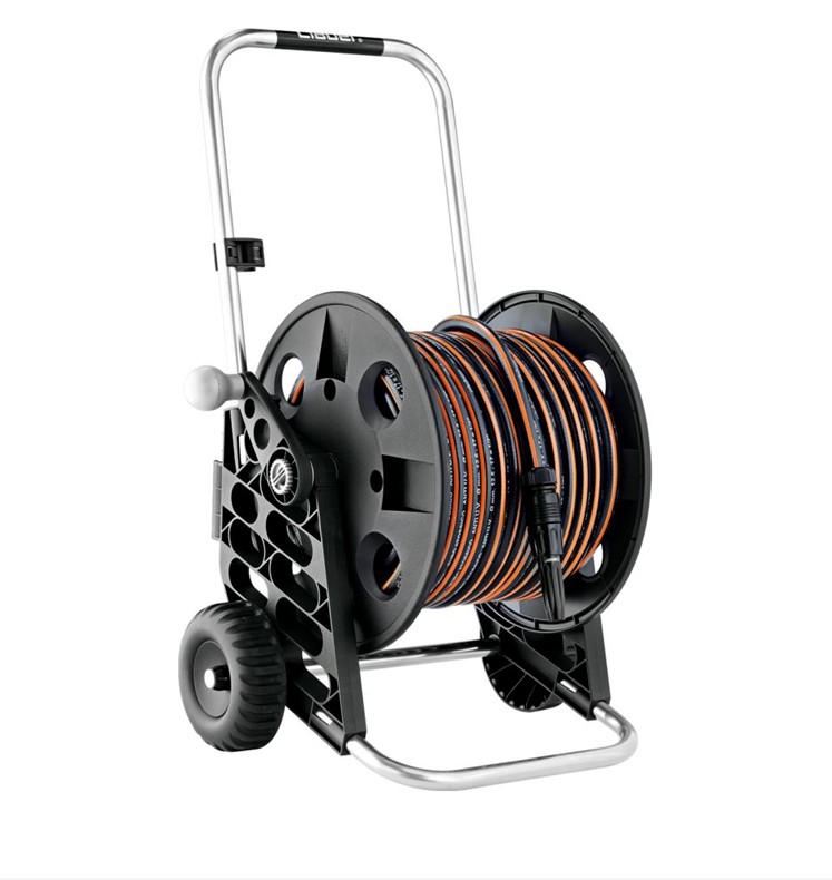Slangevognen leveres samlet og klar til brug inklusiv 30 meter original Claber 1/2" slange samt koblinger og sprøjtedyse